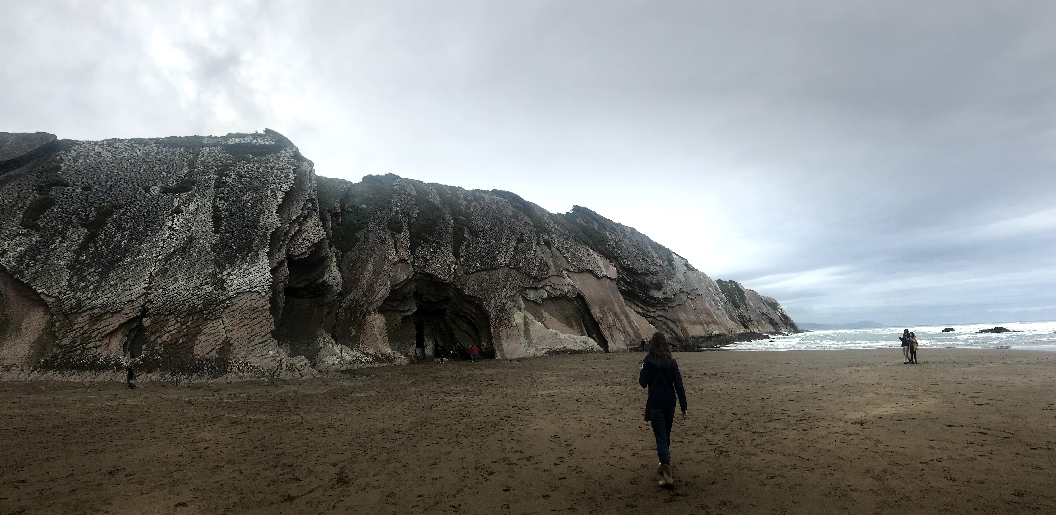 We arrived to Zumaia beach and the sites were incredible. The rock and cliff face seemed like it was turned up at some point in time. Everything made you feel so small. There are steps leading down to the beach from the town, as soon as you hit the sand it’s soft and a little wet from how far the water rises. At the base of the huge rock formations there are deep pockets of water that are colored with a green blue hue.