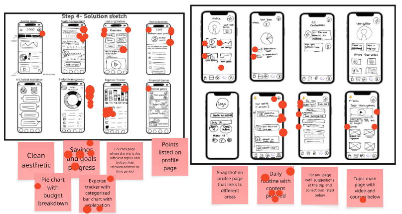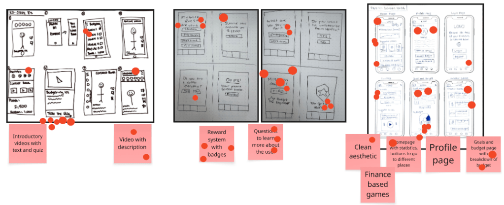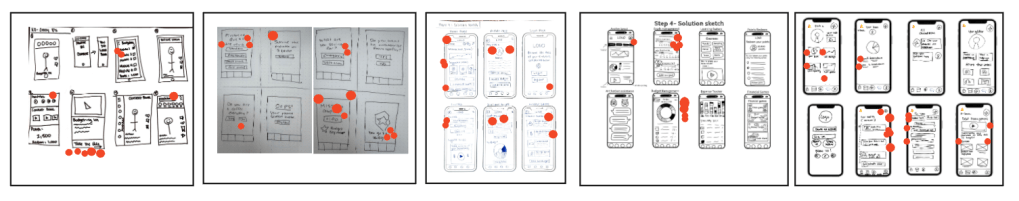 Heat map voting utilizes small sticker dots, or in our case – digital dots, to highlight parts of the sketches that your team likes or find interesting.