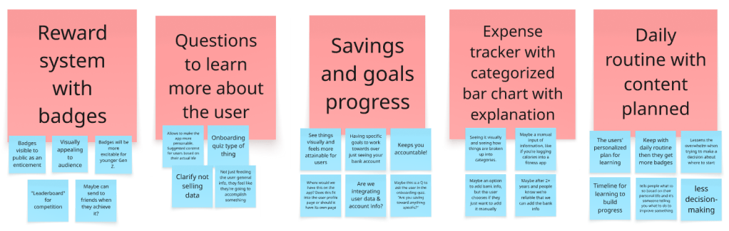 While we still pulled out a lot of good information, there were way too many things and we needed to narrow down the scope. We then heat mapped those sticky notes and pulled out just 5 key aspects to focus on.