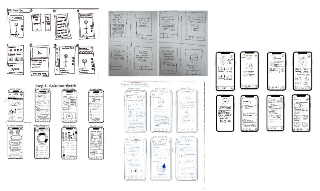 From the previous steps of sketching, you take the finalized forms and put them around your team like an art museum. Every team member’s sketch is shown anonymously, later it is presented and team members share their questions, thoughts, likes, constructive ctiticisms and ideas regarding each drawing.