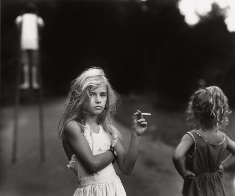 In Sally Mann’s Candy Cigarette, the viewer is immediately drawn to the unsettling image of a young girl holding what appears to be a cigarette. At first glance, it’s a moment of childhood rebellion, but upon closer inspection, it becomes a profound commentary on innocence, imitation, and the performance of adulthood.